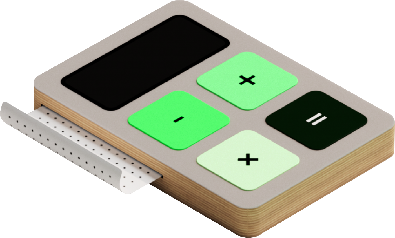 A modern remote control with a wood texture, featuring large green buttons for addition and subtraction, a black pause button, a black display area, and a USB-like port with a white dotted strip.